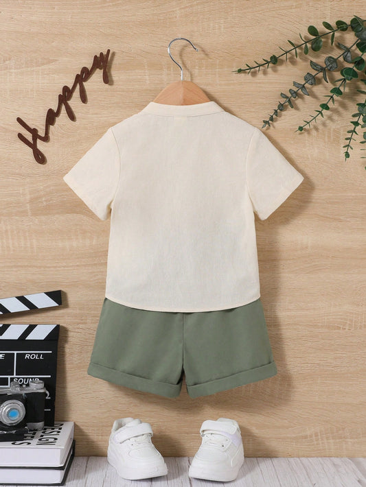 قميص صبي صغير بياقة صينية واضحة وأكمام قصيرة بزينة ربطة عنق و شورتات عادية