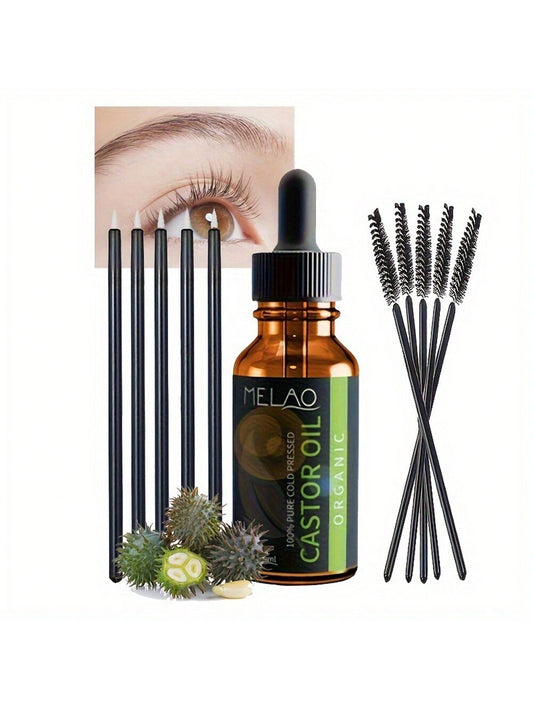زيت الخروع البارد المعصور من ميلاؤ لتكثيف وتقوية الرموش والحواجب والشعر. مرطب للبشرة والشعر. يأتي مع فرشاة.